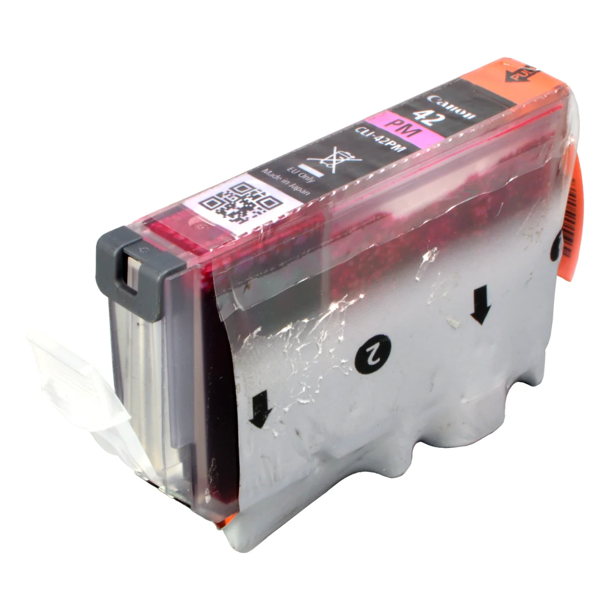 Canon CLI-42 PM. Typ: Original, Tintentyp: Tinte auf Farbstoffbasis, Druckfarben: Foto magenta. Verpackungsart: Sichtverpackung. Druckleistung (in Seiten) - Fußnote: 10x15cm, ISO/IEC 24734Die farbstoffbasierten Tinten „ChromaLife100+“ liefern herausragende Qualität und lebendige Bilder in Farbe und Schwarzweiß. Mit dem 13 ml Tintentank Foto-Magenta können bis zu 169 Fotos im Format 10 x 15 cm bzw. bis zu 37 Fotos im A3+-Format mit Rand gedruckt werden.