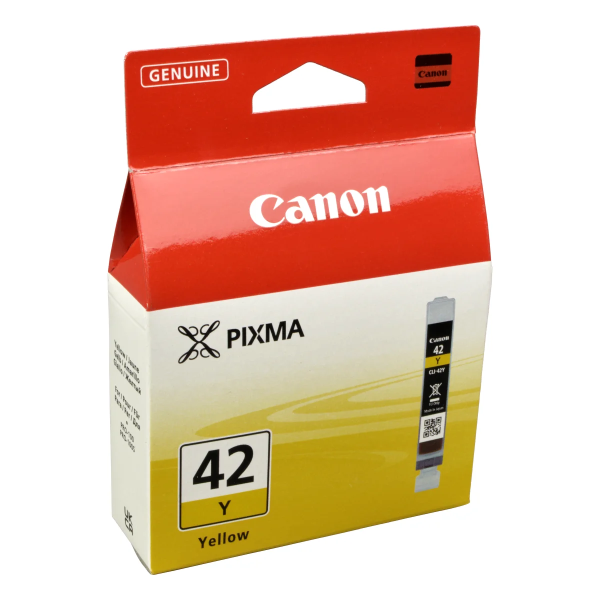Canon CLI-42 Y. Typ: Original, Tintentyp: Tinte auf Pigmentbasis, Druckfarben: Gelb. Verpackungsart: Sichtverpackung. Druckleistung (in Seiten) - Fußnote: 10x15cm, ISO/IEC 24734Die farbstoffbasierten Tinten „ChromaLife100+“ liefern herausragende Qualität und lebendige Bilder in Farbe und Schwarzweiß. Mit dem 13 ml Tintentank Hellgelb können bis zu 284 Fotos im Format 10 x 15 cm bzw. bis zu 51 Fotos im A3+-Format mit Rand gedruckt werden.