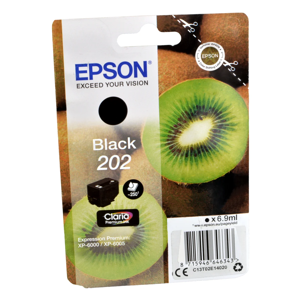 Epson Kiwi Singlepack Black 202 Claria Premium Ink. Typ: Original, Tintentyp: Tinte auf Pigmentbasis, Druckfarben: Schwarz. Verpackungsbreite: 142 mm, Verpackungstiefe: 92 mm, Verpackungshöhe: 47 mm. Palettenbreite: 80 cm, Palettenlänge: 120 cm, Palettenhöhe: 2 mSenken Sie Ihre Druckkosten