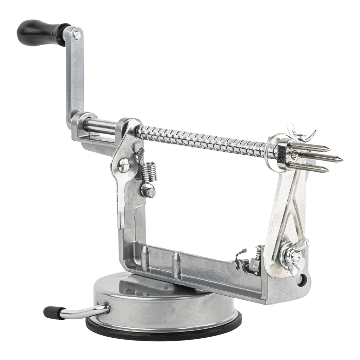 Dieses innovative Gerät ermöglicht das Schälen, Schneiden und Entkernen von Äpfeln und anderem Obst im Handumdrehen.